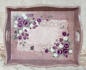 オリジナルデザインのベリーと薔薇をアクリル絵の具で木製トレイにペイント